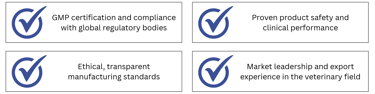 Alongside these imports, Prix also proudly manufactures a wide range of high-quality veterinary medicines locally under strict GMP standards.